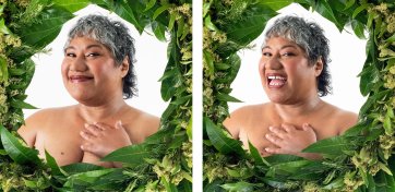 Latai’s My Friendly Island Cooks sees national and cultural identity, tourism imagery, personal and community histories playing out inside her performative self portraiture.