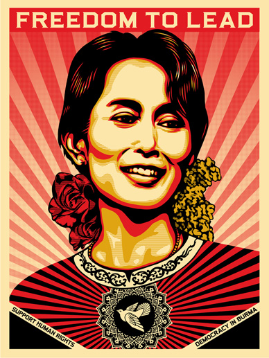 It's not often that an artist is arrested walking into the opening of their first museum retrospective. And considering that this same artist's portrait of the new president was being acquired by the National Portrait Gallery in Washington at the same time, the whole scenario seemed even more unlikely. The artist was Shepard Fairey, catapulted to fame during the 2008 presidential election with his resonant image of Barack Obama, but known primarily for his street art, posters and illustrations. Fairey was apprehended by the police for graffiti offences as he entered the Institute of Contemporary Art in Boston where a major exhibition of his work was being held. He had been postering walls of the city with his stickers and posters. Long before his art appeared in galleries, Fairey had populated the streets with his striking designs. Fairey (born 1970) graduated from the Rhode Island School of Design in 1992 but had already begun to be known by his peers for his sticker campaigns that took his images to the street. Fairey has said that he wanted to share his images with an audience and, especially before internet, abandoned buildings, urban spaces and city streets provided high visibility. This visibility has come at a cost: his arrest on 7 February this year for tagging is his 15th such conviction. After he graduated, Fairey set up his own printing business, which eventually expanded to become the design agency Studio Number One, founded in 2003 with his wife Amanda. Fairey designed posters, t-shirts a suite of successful record covers for bands such as the Black Eyed Peas, Anthrax, Smashing Pumpkins and the poster for the film Walk the Line. Fairey's commercial work and his private passions aren't always easy to separate, but generally his posters announce his politics. Wearing his heart on his sleeve, Fairey has made posters of his favourite musicians - Joe Strummer, LL Cool and Tupac Shakur – and his strongly held causes – the environment and the war in Iraq.