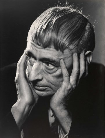 Dupain's best portraits of these decades combine a dramatic boldness in composition (as in the simple stance of Francis Lymburner) and lighting, with telling inclusions of foreground or background elements, as in the portrait of artist Hal Missingham (Director of the Art Gallery of New South Wales and a fellow photographer), his hand raised in the air eloquently but inexplicably; or in the view of Clem Seale drawing a profile of Robert Emerson Curtis in 1945. Dupain's portrait of the famed fashion photographer George Hoyningen Huene in Dupain's studio in 1937, with tie undone and crumpled shirt, has its own, perhaps unintended, seductive aura.