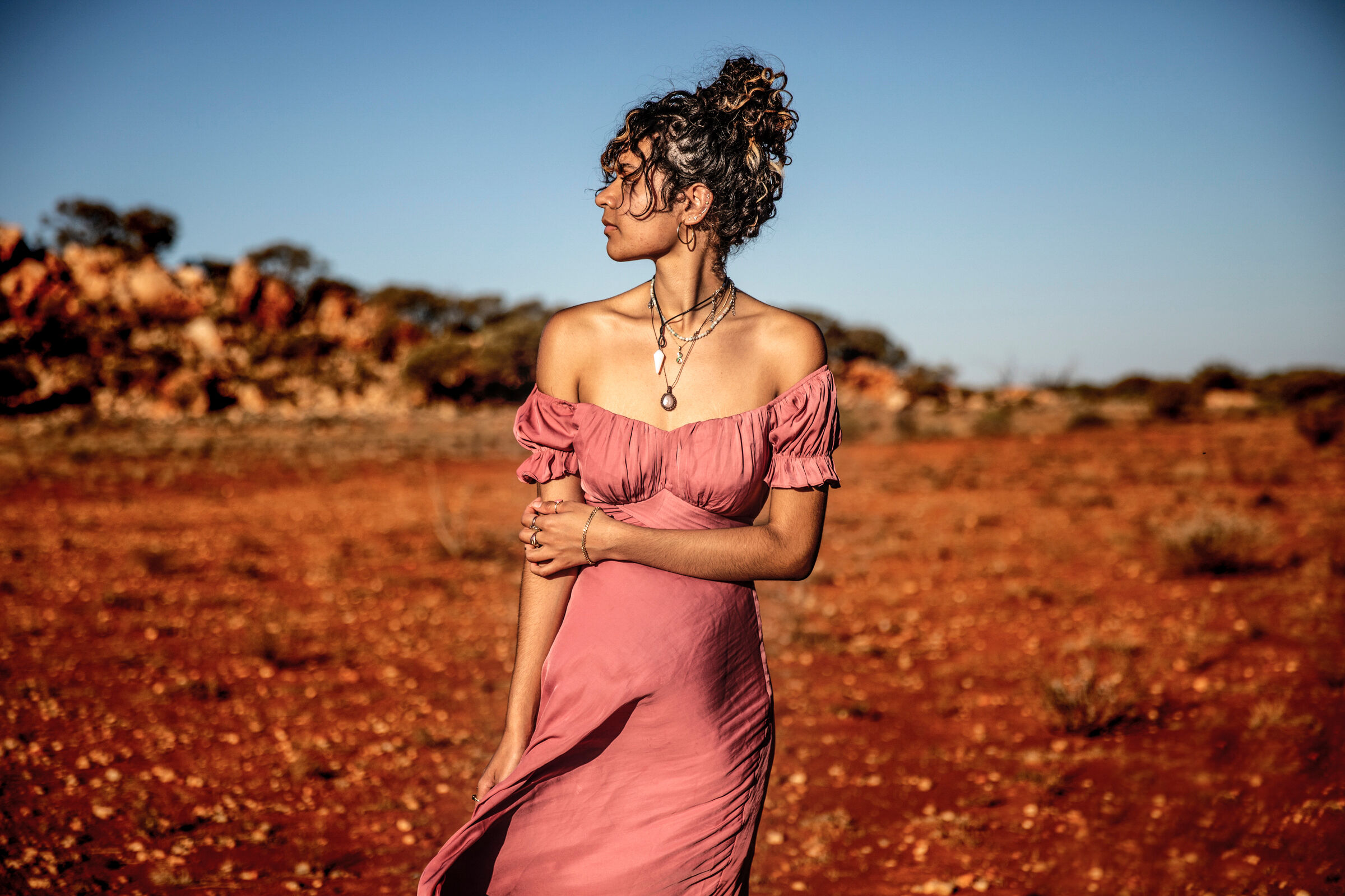 In Transference, I began a collaboration with Tjupan speaker, Nikola Sophena (Minigootha) Ulrich from Kalgoorlie. The photographic journey with Nikki's family started in 2015 as part of my project Ngala Wongga (Come Talk), a collaboration with her grandmother, Mrs Sceghi, and her mother, Edie, both of Tjupan heritage. The ongoing visual work around Transference is a natural flow on, which follows the intergenerational sharing of stories, knowledge and culture. The universal idea that everything is connected, and how the memory of the land passes or transfers to each other, are central to the project.