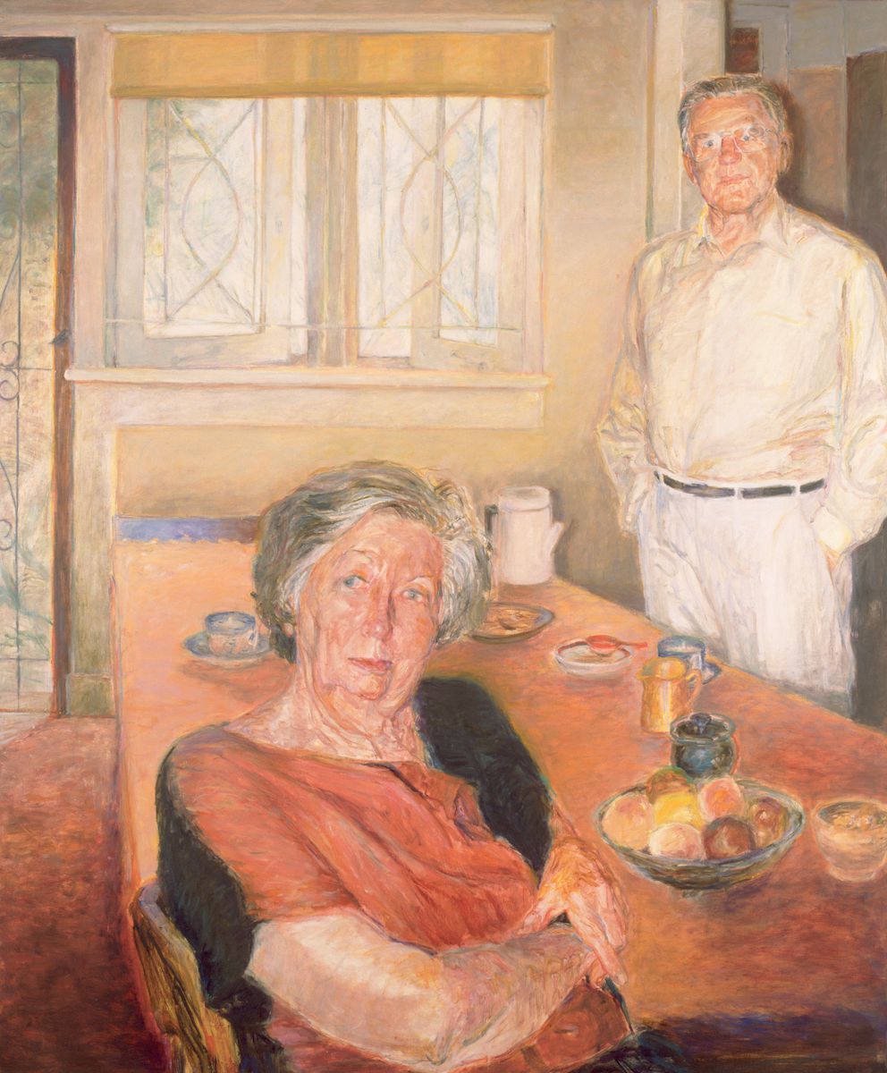 Made using Jenny Sages' signature technique – combining colour pigment with encaustic wax – this portrait of Borlase and Short was bought from Sages by Margaret Olley to give to the National Portrait Gallery. However, predicting that Sages would give away any money received, Olley bought her two tickets to London to see a Pierre Bonnard exhibition instead.