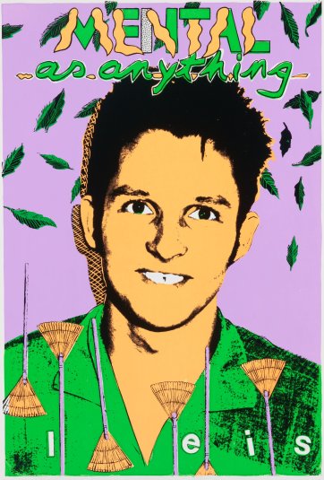 The band Mental As Anything – Martin Plaza (guitar, vocals), Reg Mombassa (guitar, vocals), Peter O’Doherty (bass, vocals), Greedy Smith (keyboards, harmonica and vocals) and David ‘Bird’ Twohill (drums) – were a group of cash-strapped art students who began playing together in 1976. Their first album, Get Wet, was a smash hit in 1979. Counting more than a dozen songs about drinking in their discography, including the classics ‘Too Many Times’ and ‘The Nips are Getting Bigger’, the ‘world’s greatest garage band’ now have more Top 40 singles to their credit than any other Australian group and have sold millions of records world-wide. By 2005 only Smith and Plaza remained of the original members, but Mental as Anything released an acclaimed acoustic album, Plucked. Smith estimates that over forty years, the longest break he has had from performing is six weeks. The Doherty brothers continue to perform in the band Dog Trumpet, formed in the 1990s, billed as ‘arguably the loudest soft-rock band in southern NSW’. Chris O’Doherty (Reg Mombassa), well known as a designer for the brand Mambo, has 21 artworks in the collection of the Art Gallery of New South Wales alone.