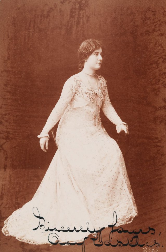 Amy Castles (1880–1951), soprano, was born in Melbourne and educated at schools in Bendigo, where her family lived from the early 1880s. She was still at school when her talents attracted the attention of a singing teacher named E Allan Bindley, who orchestrated her professional debut at the Austral Salon in Melbourne in March 1899. Having toured Australia to raise the means to study abroad, she went to Paris to train with Madame Mathilde Marchesi, Melba’s teacher, and later studied with Jacques Bouhy. She made her London debut in November 1901, appearing with Clara Butt and compatriot Ada Crossley, and then returned to Australia under contract to JC Williamson & Co. Castles performed in Britain and Europe throughout the first decade of the century, touring Australia again for J & N Tait in 1909–1910 before, in 1912, being offered a four-year contract with the Imperial Opera in Vienna. She was forced to return to Australia on the outbreak of war; and in 1917 went to the United States, remaining there for two years during which period she appeared at Carnegie Hall and gave concerts for convalescent and returned servicemen. Back in Australia from 1919, she went into semi-retirement. Castles never married. She died in Melbourne in 1951.