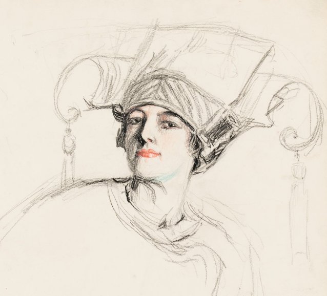 Emily Hilda Rix (1884-1961), artist, left Australia in March 1907, having trained for three years at the National Gallery School. She, her sister Elsie and their widowed mother Elizabeth proceeded from London – where Hilda studied at the New Art School – to Paris, where she attended art classes at the Académie Delecluse and the Grande Chaumière. She and Elsie spent several exhilarating periods in Tangier, Morocco, where she made many striking paintings and drawings reflecting her passion for costume; and in the artists’ colony of Étaples. Returning to London at the outbreak of the First World War, by 1916 she had lost her sister and her mother to typhoid fever. She married an Australian soldier, George Nicholas, but he was killed in France within weeks of their wedding. She returned to Australia in 1918, settling in Mosman, where she painted gardens and friends around the harbour. An intrepid car traveller, in 1928 she began a new life as the wife of Edgar Wright, owner of the grazing property Knockalong on the southern Monaro. There, she designed a free-standing French-style studio, into which she moved her paintings, drawings, costumes and mementoes of foreign lands; there, into the mid-1940s, she painted high-coloured scenes of the Australia that ‘rode on the sheep’s back’, and the vigorous people who worked the land.