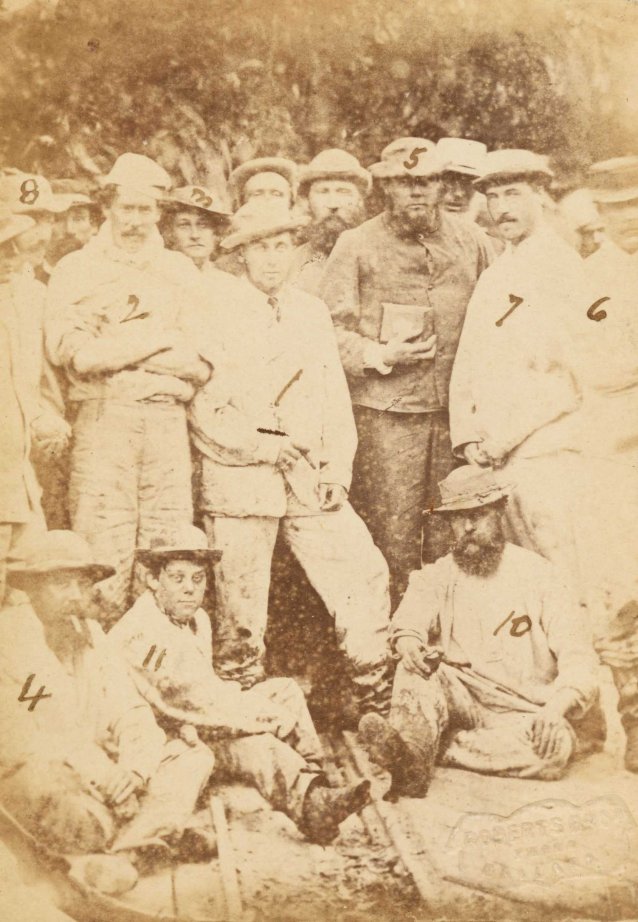 H.R.H. The Duke of Edinburgh and Suite in Mining Costume after descending the Band of Hope Gold Mine, Ballarat, Australia